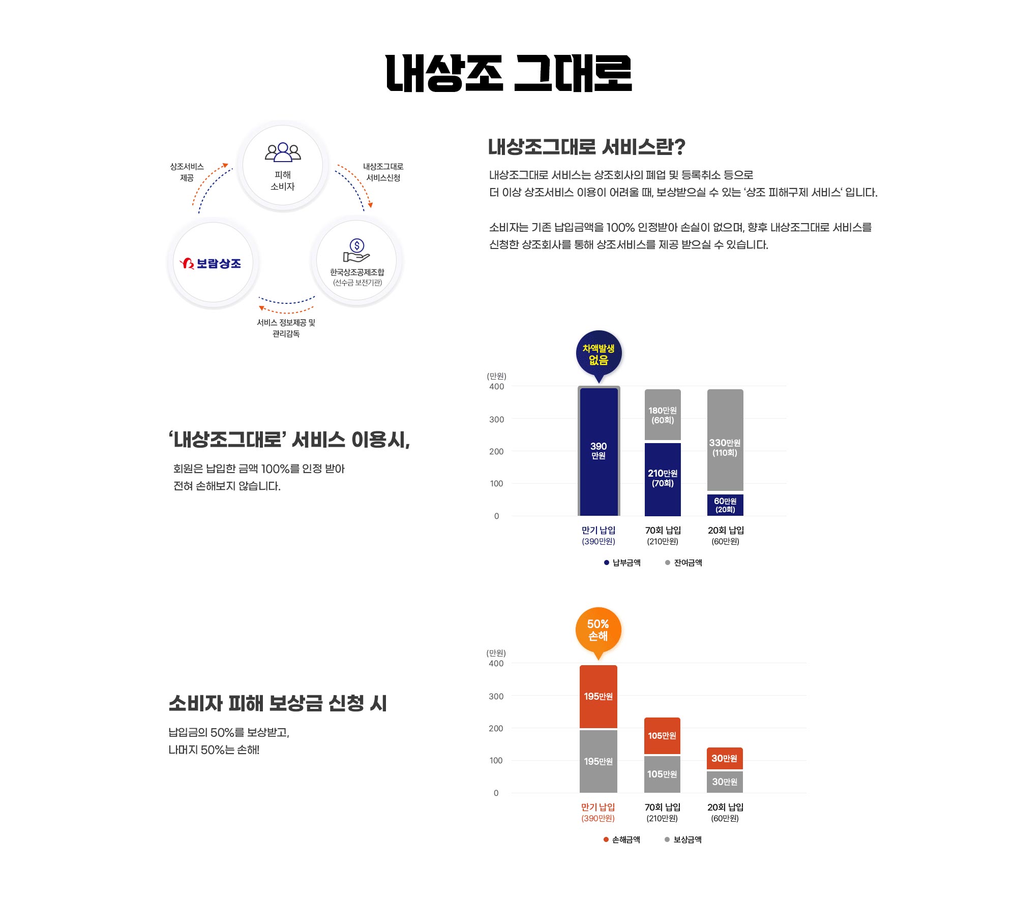 | 캐쉬백&부금전환 서비스 | 복지몰 이용금액의 최대 5% 적립 또는 상조 부금 전환 | |||
